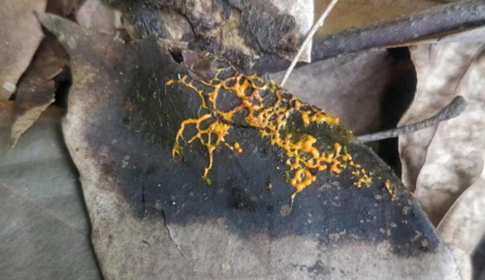 ![]() 辐射状向外伸展的菌丝体,蘑菇便是从这样的菌丝体上长出来的。©盐粒 ![]() 黄鳞小鬼伞橙色的菌丝束。 菌丝hyphae |