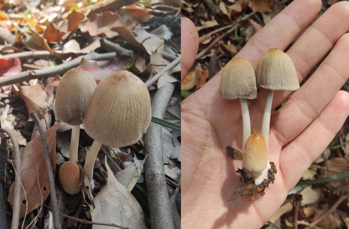 ✓ 多角度拍摄蘑菇,要能清晰看到蘑菇各部位的位置和形态,尤其是蘑菇的菌盖背面。大多数蘑菇菌盖背面的子实层体(菌褶、菌孔等)是重要而不可或缺的鉴定特征,但没有经验的人很少会拍摄蘑菇的背面。可以将蘑菇正面和背面分开拍摄,也可以选择一个能同时看到正面和背面的角度。当有多个蘑菇,可以摘一朵倒置放在其他蘑菇边上拍照。