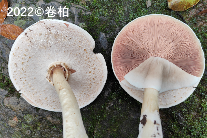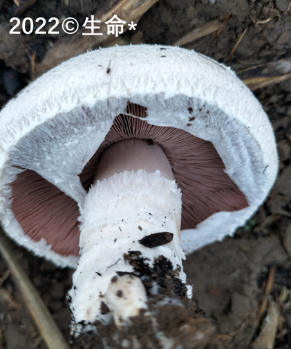 图六 蘑菇属的内菌幕,成熟后会脱落并变成菌环。拍摄者:卷柏