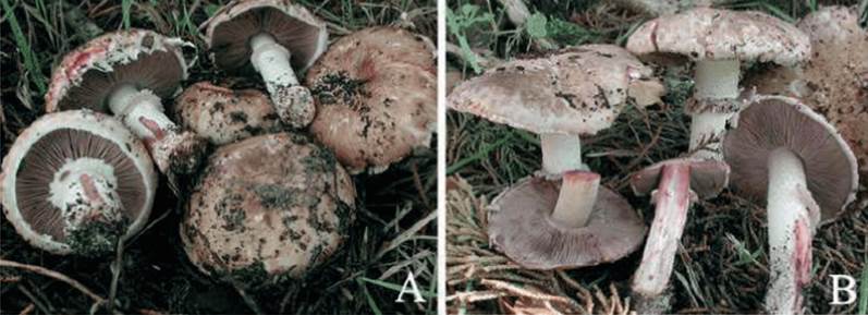 as the mushroom matures, from pale pinkish to brownish grey. Similar color