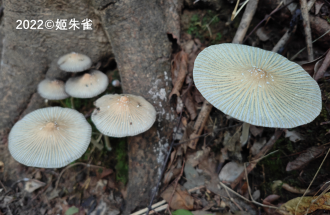 图2-3 疑似Hausknechtia sp.,图2的菌盖中部可见少量菌幕残余。