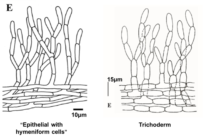 ‘epithelial with hymeniform cells’, and the ones of the latter is described as