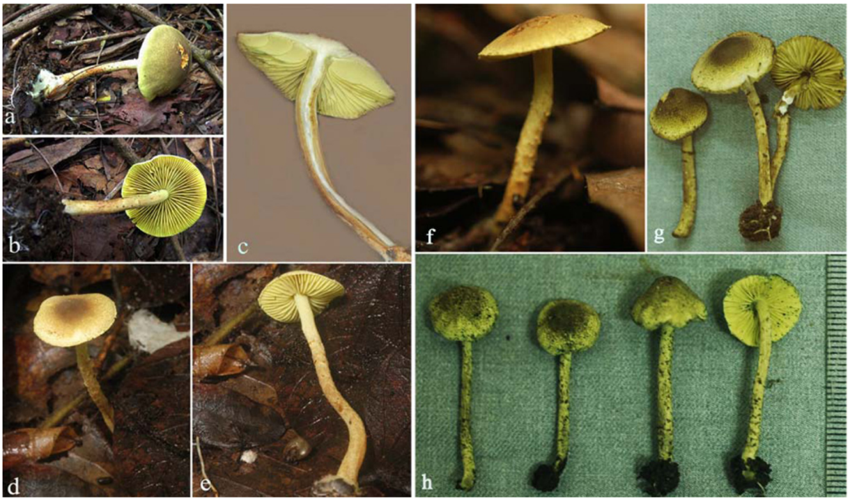 该种由昆医真菌资源研究组在安徽省石台县野外考察时发现,隶属于锐鳞环柄菇组,主要特征是子实体鲜黄色;菌盖被暗黄色至黄褐色的锥状鳞片;菌褶淡黄色至黄色,离生;担孢子椭圆形,类糊精质,薄壁。 该物种相似于纯黄环柄菇L.omninoflava,但......