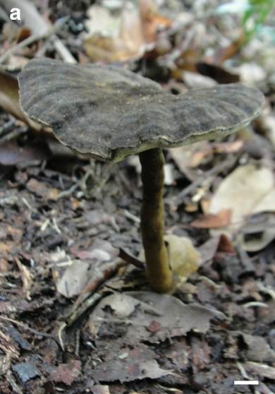 Amaurodermellus ovisporum的担子果,比例尺:1cm。引自Costa-Rezende, D.H., Robledo, G.L., Drechsler-Santos, E.R. et al.